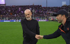 师徒重聚,阿隆索与维尔茨赛后拥抱致意,后者赠出比赛球衣